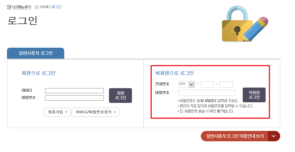 비회원으로 로그인할 때 필요한 정보를 입력합니다.