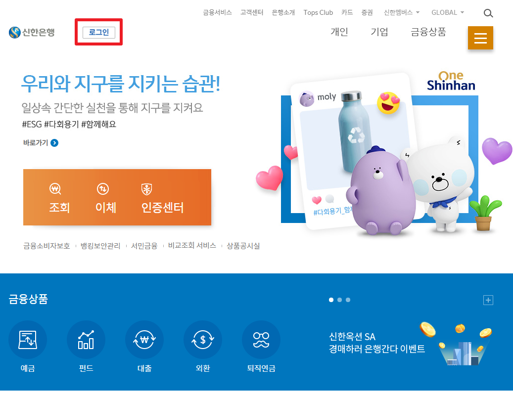 오늘은 PC로 신한은행 인터넷뱅킹 웹페이지에서 PDF 파일로 이체확인증을 발급하는 방법에 대해 알아보겠습니다. 먼저 신한은행 웹페이지에 접속합니다. 웹페이지 주소는 https://www.shinhan.com/index.jsp 입니다.