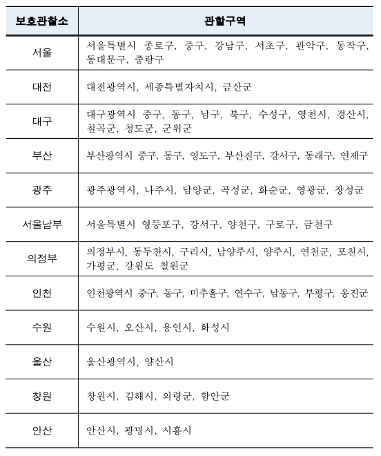 전자장치 부착 조건부 보석제도는 시범실시 보호관찰기관 관할구역 내에 주소가 있는 피고인을 대상으로 시범실시합니다. 보호관찰기관 관할구역의 목록은 다음과 같습니다.