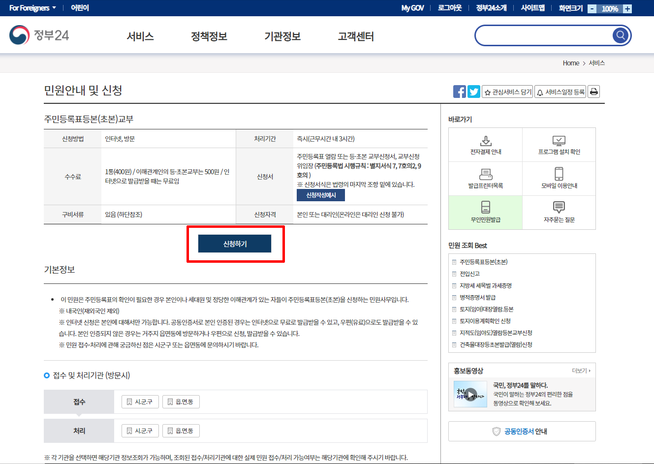 안녕하세요. 오늘은 정부24에서 주민등록초본을 발급한 후 다른 사람에게 보내는 방법을 알아보도록 하겠습니다. 다른 사람이 직접 주민등록초본을 출력할 수 있도록 하는 방법입니다. 먼저 정부24 주민등록초본 발급 페이지에 접속합니다.