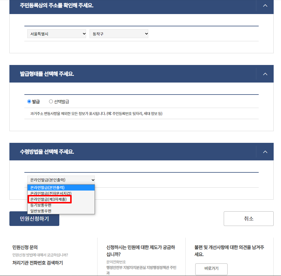 [온라인발급(제3자제출)]을 클릭합니다.