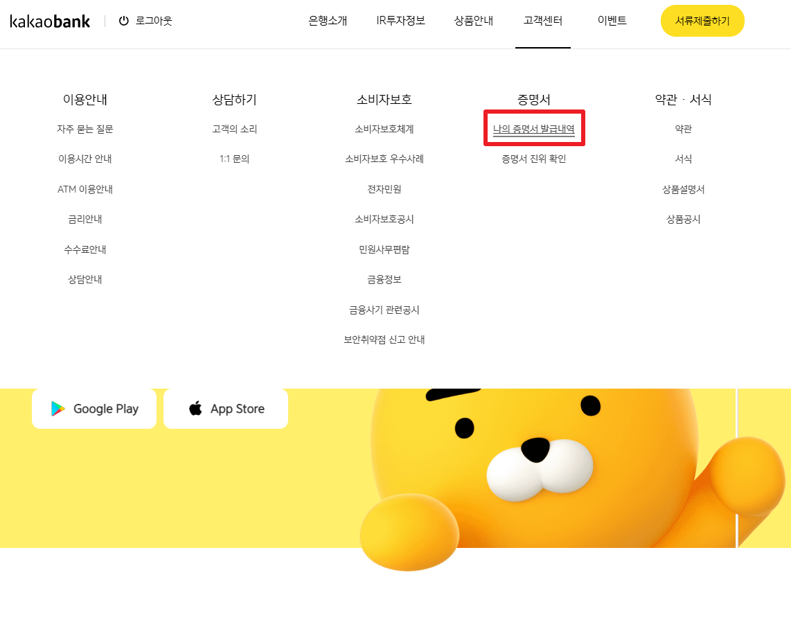 [나의 증명서 발급내역]을 클릭합니다.