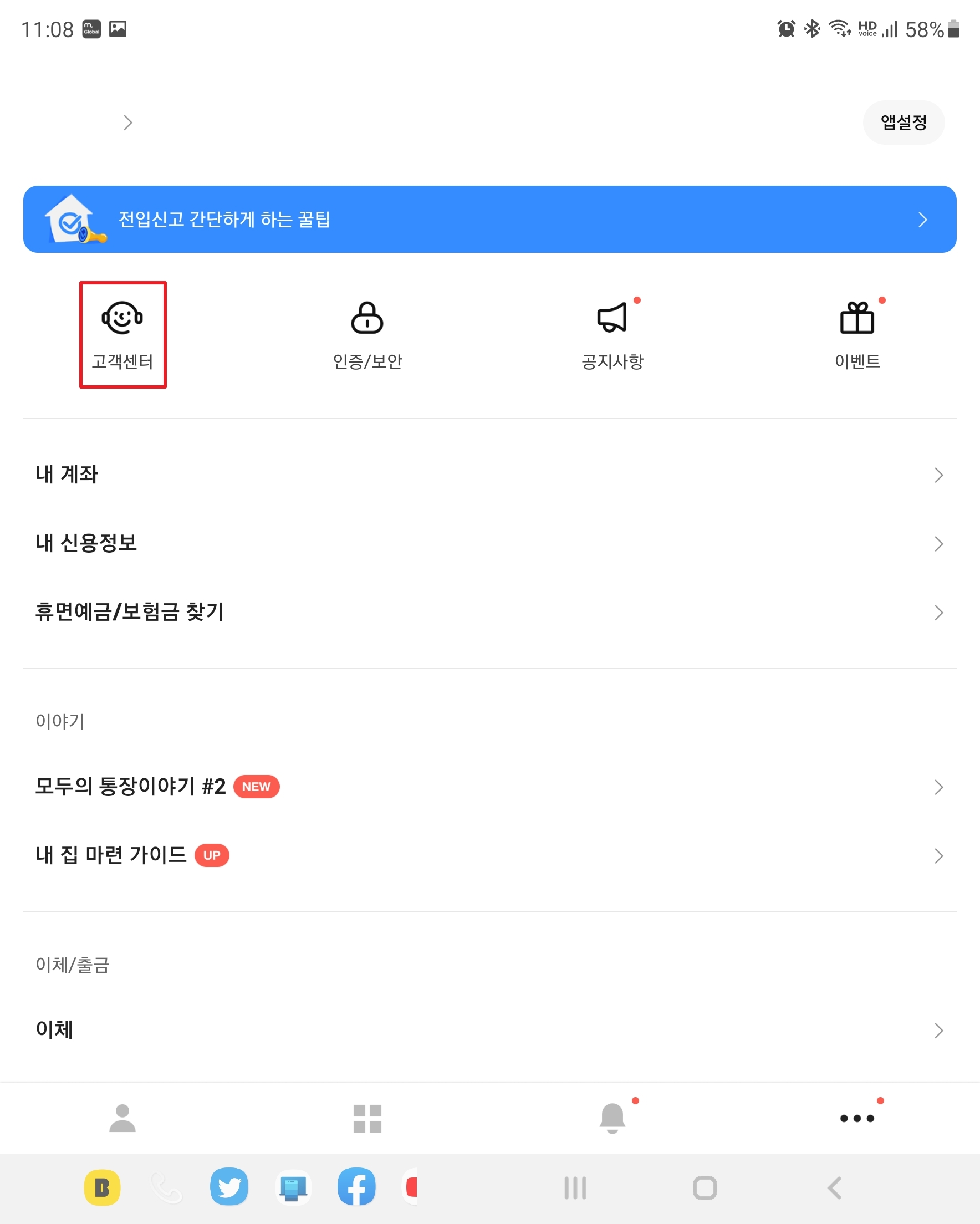좌상단의 [고객센터]를 누릅니다.