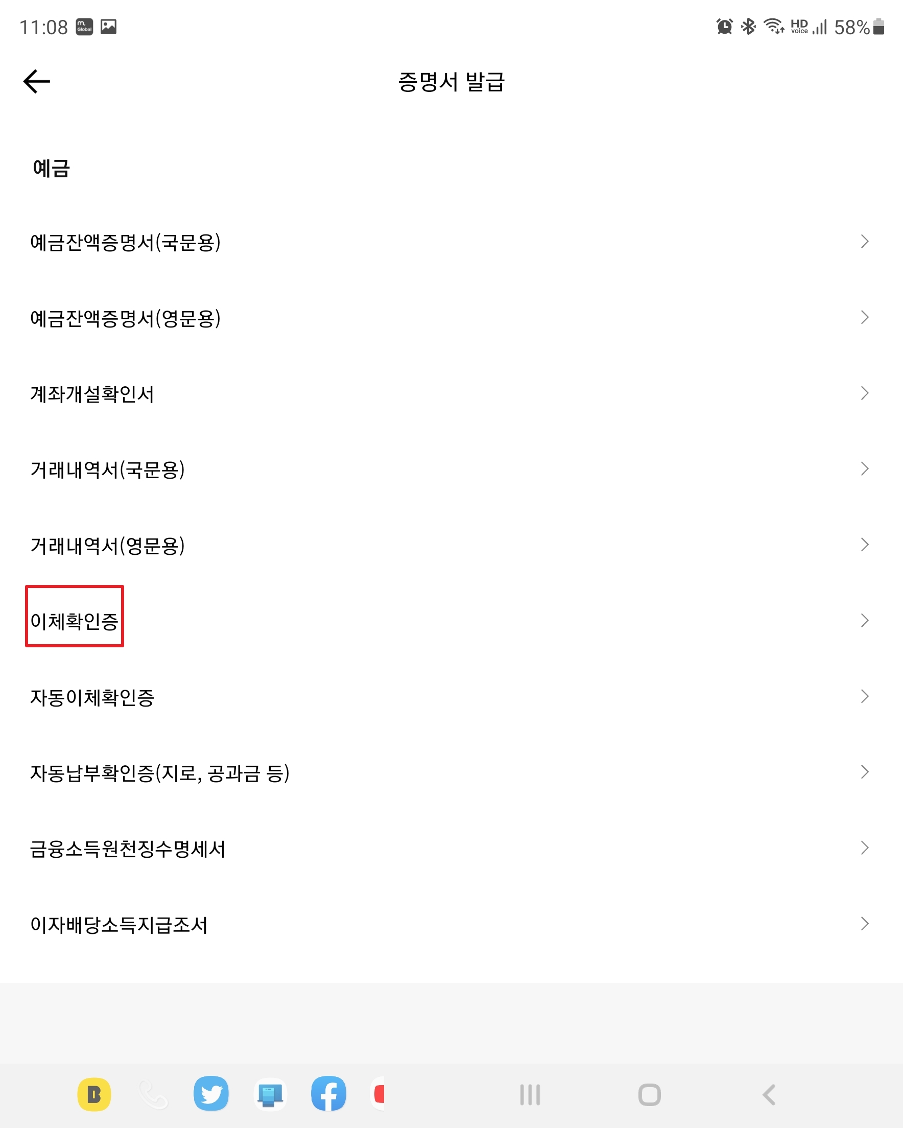 중간에 위치한 [이체확인증]을 누릅니다.