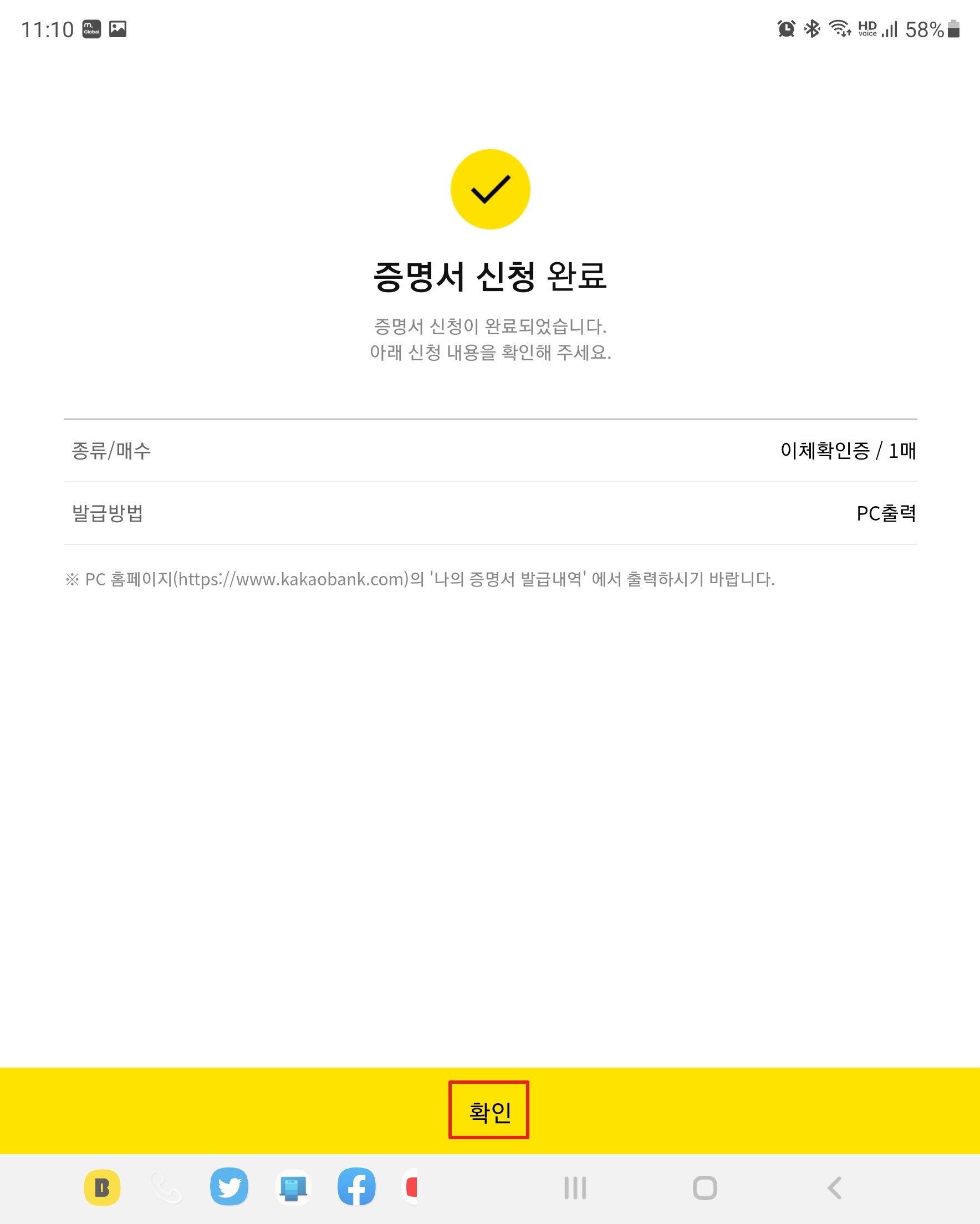 증명서 신청이 완료되었습니다.