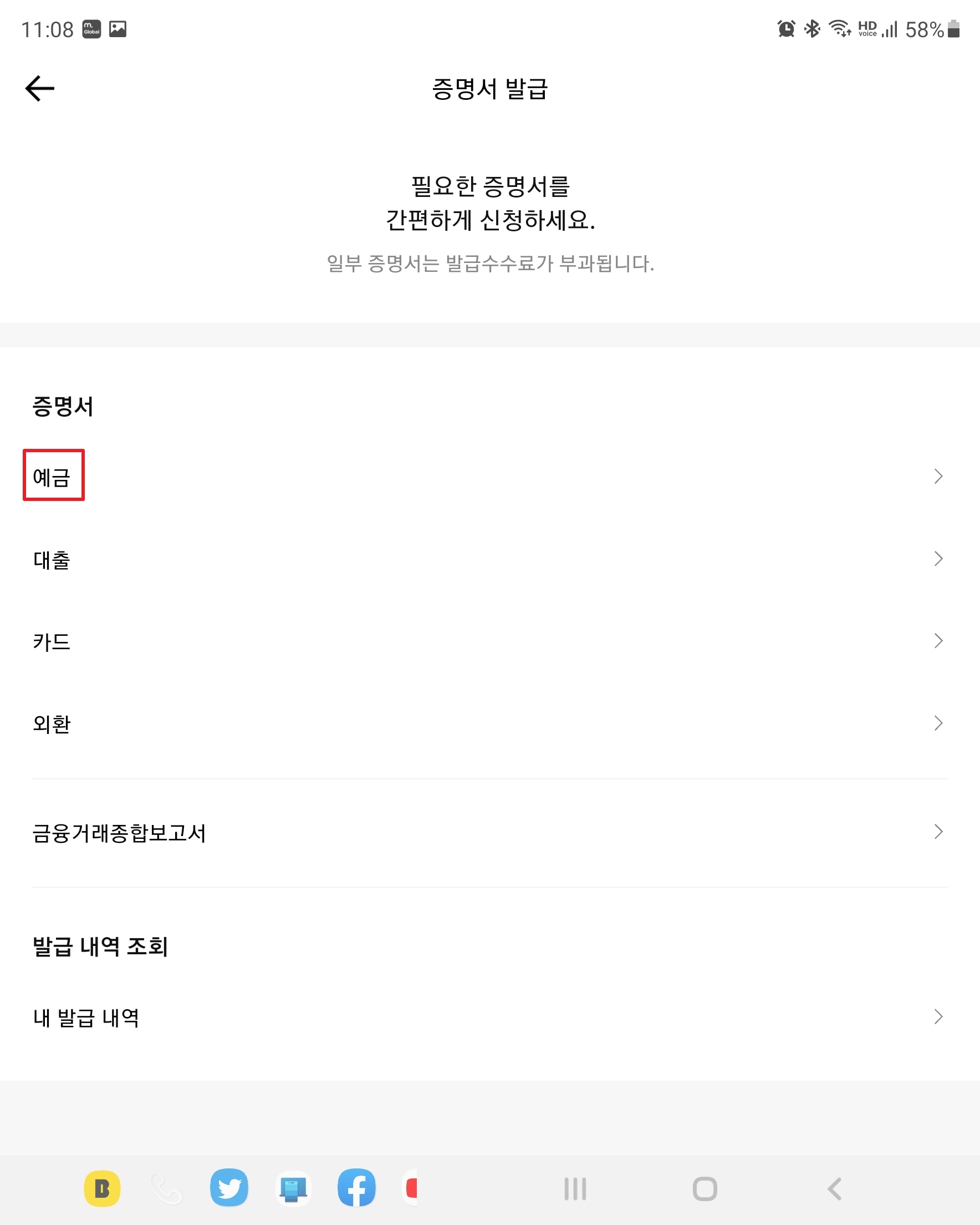 좌상단에서 [예금]을 누릅니다.