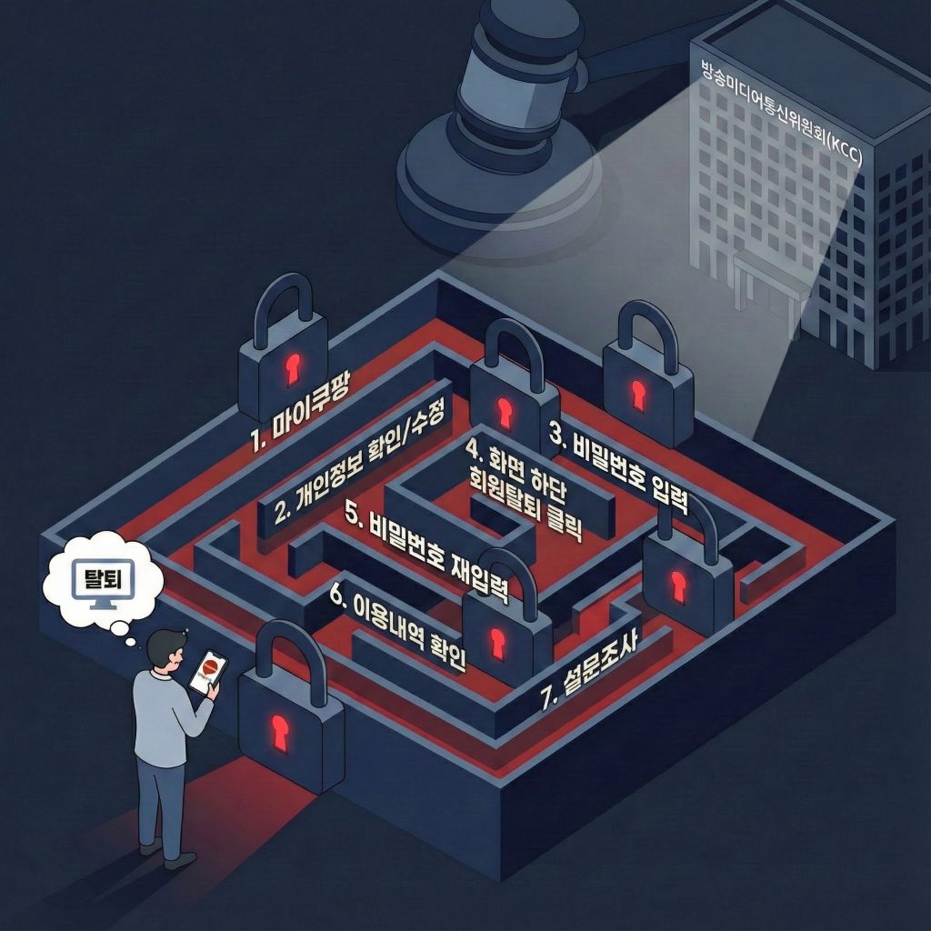 그러나 마음먹고 탈퇴를 시도한 이용자들은 곧장 예상치 못한 난관에 봉착합니다. 가입은 스마트폰 터치 몇 번으로 간편하게 이루어졌던 것과 달리, 해지 절차는 마치 미로 찾기처럼 복잡하게 설계되어 있기 때문입니다.